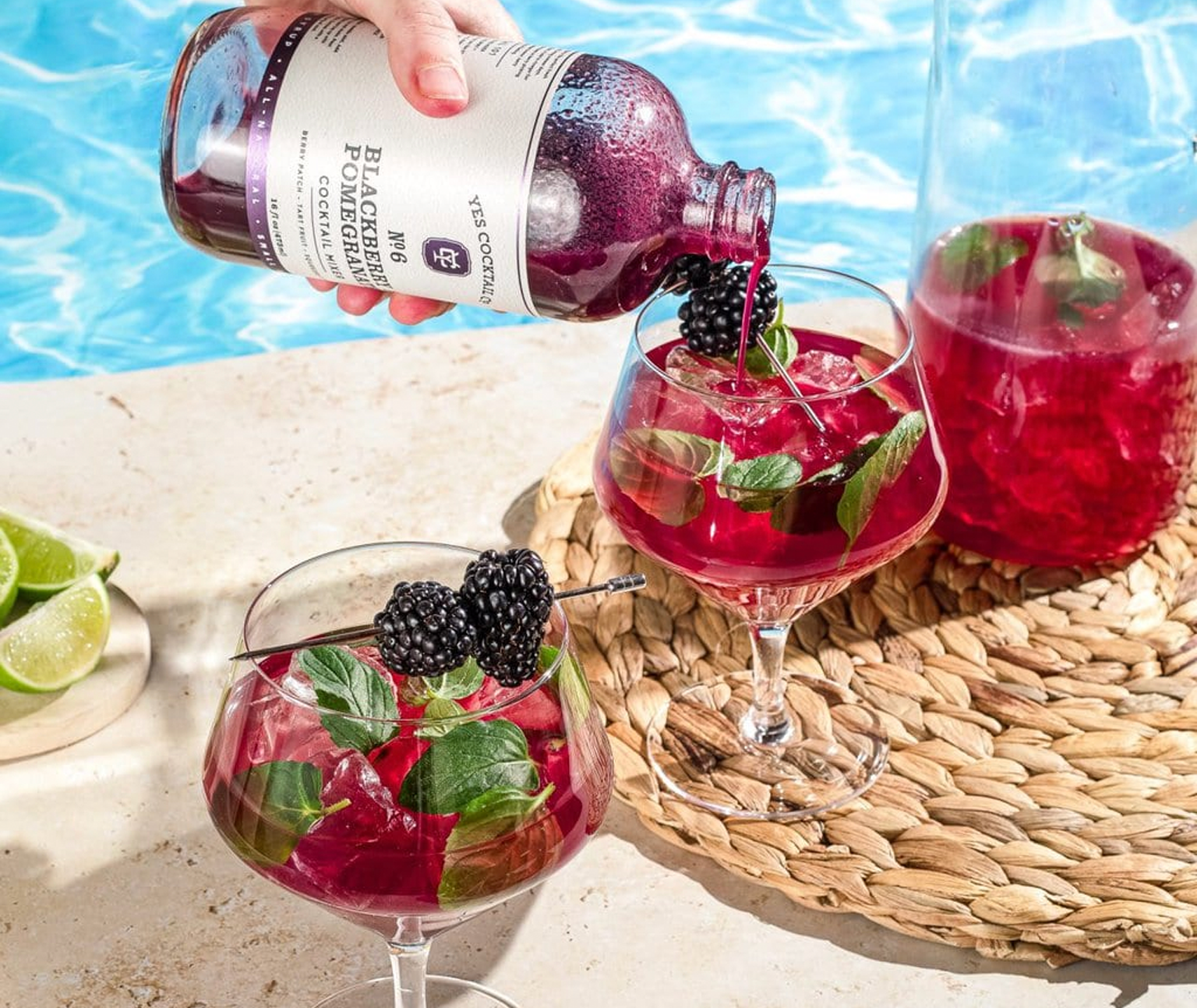 This blackberry & pomegranate mixer is the perfect fresh muddled berry sipper for your porch swing summer days. Use in lieu of simple syrup in any cocktail recipe, as a sweetener in tea & lemonade, or add to vinegar for a lovely salad dressing. It’s as down home as berry picking at the local farm. It’s that warm summer breeze, berry stained hands, home made jam kind of feeling.