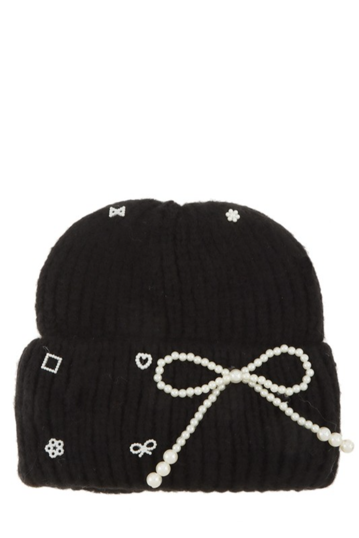 Pearl Ribbon Knit Beanie