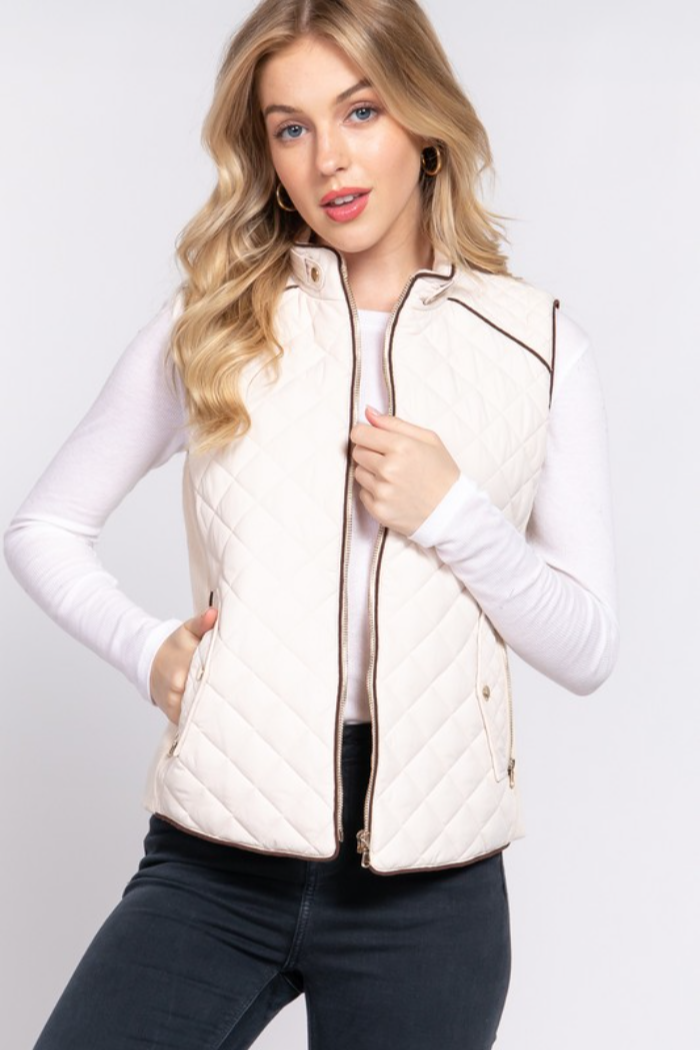 The Saddlebrook Quilted Vest blends timeless equestrian style with modern warmth and comfort. Crafted with fine suede piping and quilted padding, this vest offers both sophistication and functionality. The ribbed side panels provide a flattering fit, while the front pockets add a practical touch for everyday wear. Perfect for layering on cooler days, it’s a stylish nod to classic equestrian heritage.