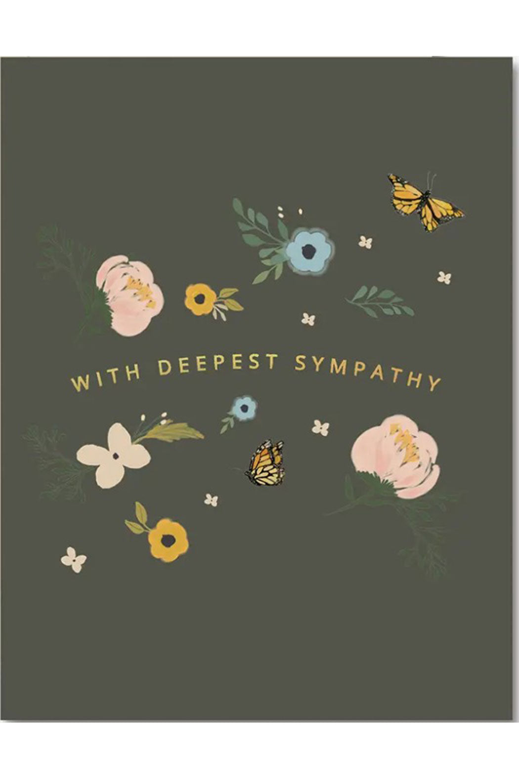 Let nature and a written note provide sympathy. Gold Foil accent lettering. Full - color 4.25" x 5.5" folded cards. Blank interior.