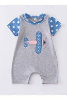 Your little one will soar through the day in this super cute, comfy romper! Featuring an adorable blue dot plane embroidery, he'll be stylish and proud of his patriotic look! Perfect for trips to the beach or backyard bbqs, he'll be the cutest pilot in town!