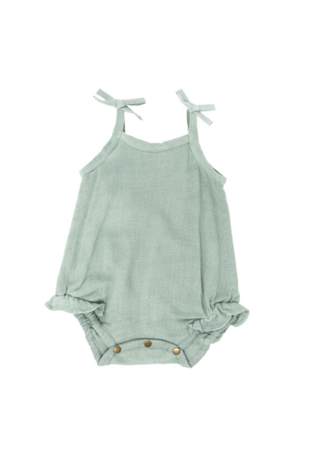 Soft elastic around the thighs for baby's complete comfort, with muslin ruffle detail for added charm and cuteness