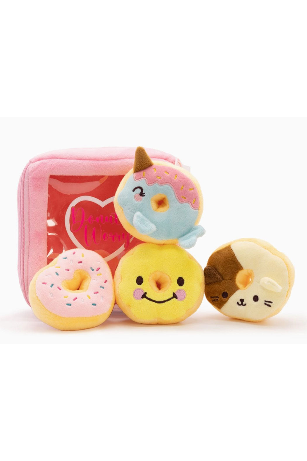 Time for some sweet donuts!! 🍩Bring some happiness into your life with our new "Donut Worry" box of plushies! Super soft and squishy. Guaranteed to bring a smile to anyone's face and satisfy that cuteness craving! :D Comes with four donuts in a pink donut box with transparent window and zipper closure mechanism.