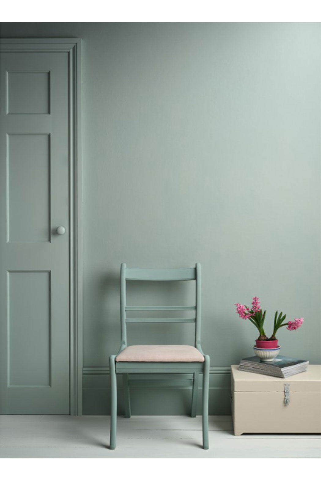 Annie Sloan Satin Paint in Pemberley Blue is a refined and elegant pastel blue, inspired by the eggshell blue so often used in manor houses during the illustrious Regency period. This blue maximizes space because of its recessive qualities; whilst a generous helping of green and white pigment warm up and soften the blue. Pemberley Blue pairs well with Canvas and Duck Egg Blue.