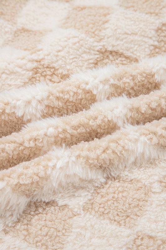 Stay warm in style with the Checker Sherpa Jacket — the perfect blend of comfort and modern design. Featuring a distinctive check pattern with contrast corduroy accents, this jacket adds texture and dimension to any outfit. The zip-up front and classic collar make it easy to layer while keeping a polished, put-together look.