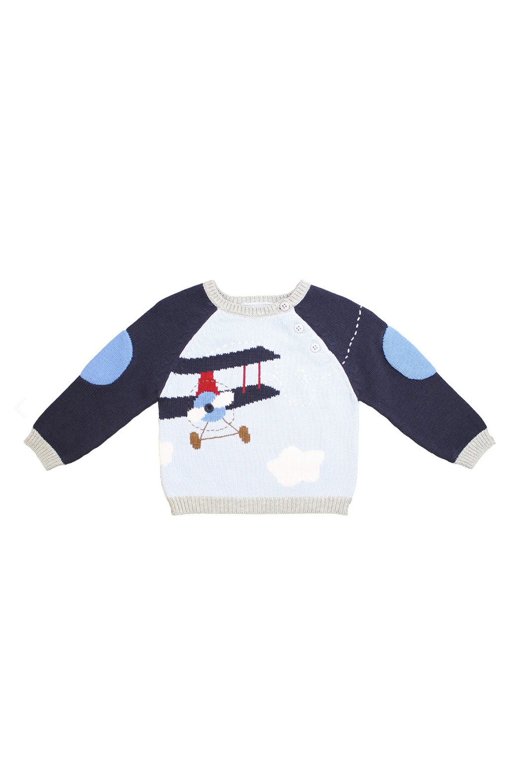 Our airplane knit sweater is machine washable too for easy care so don't be afraid to let your little one play extra hard!