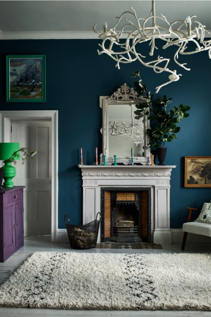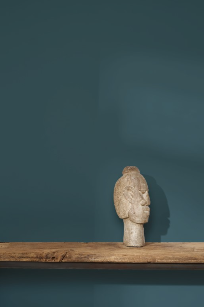 Aubusson Blue is a dark green-blue, inspired by the sumptuous Prussian Blue pigment used in artwork throughout the 19thCentury, including Van Gogh’s Starry Night, and Hokusai’s The Great Wave off Kanagawa. This color will create a dramatic and luxe environment, especially when paired with golds.