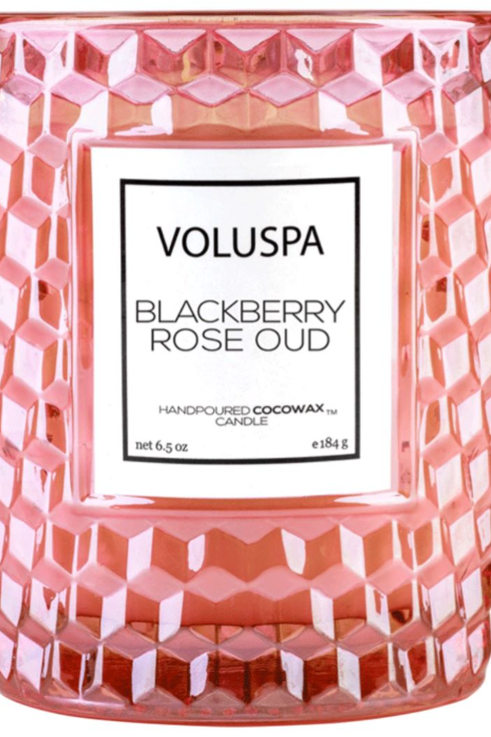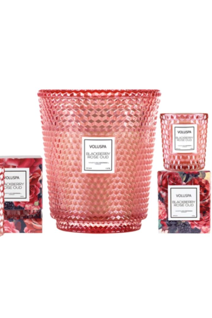 This Classic Candle is delicately sized for any space! The Roses Collection glass is textured with a classic geometric 3D cube pattern and colored to match the rose that served as fragrance and packaging inspiration.
