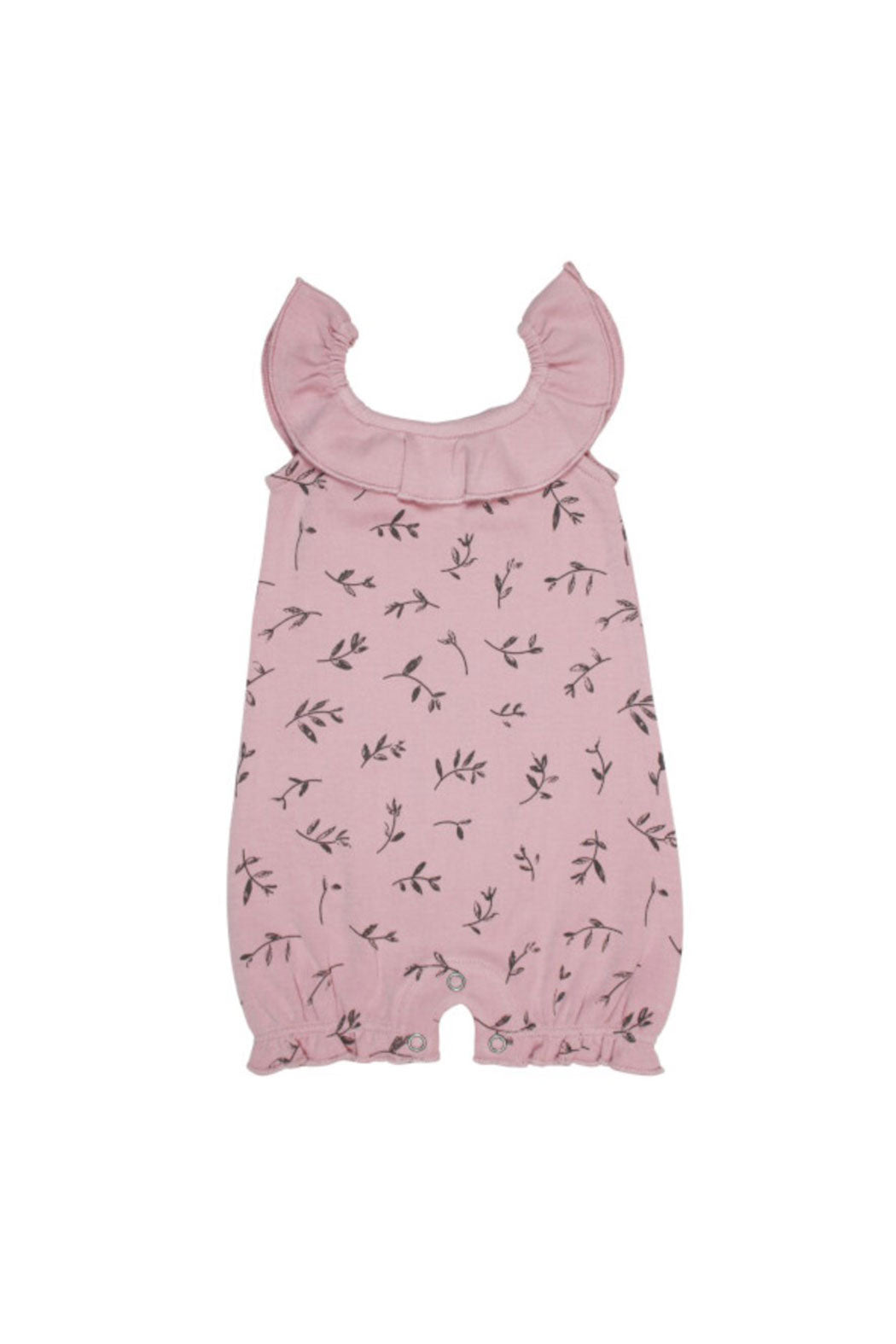 The soft romper has an elastic neckline ruffle for easy dressing and is cut a little longer to account for some shrinkage.