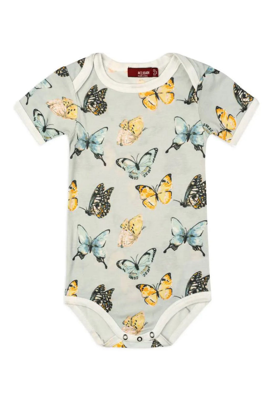 Our soft and soothing newborn and baby Bamboo One Piece in the Butterfly print merges understated form and functionality.