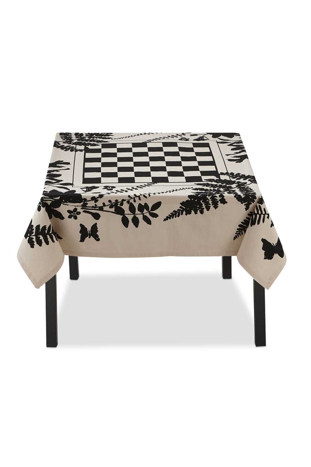 Checkers or Chess, take your pick! This tablecloth acts as the perfect backdrop for enjoying a day of fun and games with friends and family. Use anything you have lying around - buttons, bottlecaps, or even wine corks as the pieces and play while you enjoy the warm weather of Spring and Summer. Made from cotton, this tablecloth features a one inch hem and hand screen printed checkerboard design. This tablecloth also comes with a printed drawstring bag for safekeeping.
