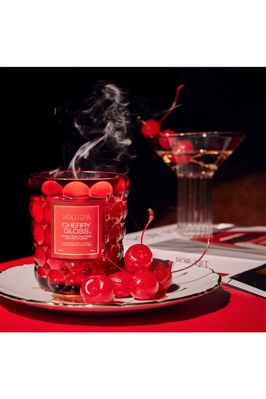 Embrace the power of seduction with Cherry Gloss. Smoked Cherry meets love me, love me not Rose Petals, combined with the confidence of Guaiac Wood and a hint of Leather. Strut the aromatic catwalk of dynamic Cherry Gloss.