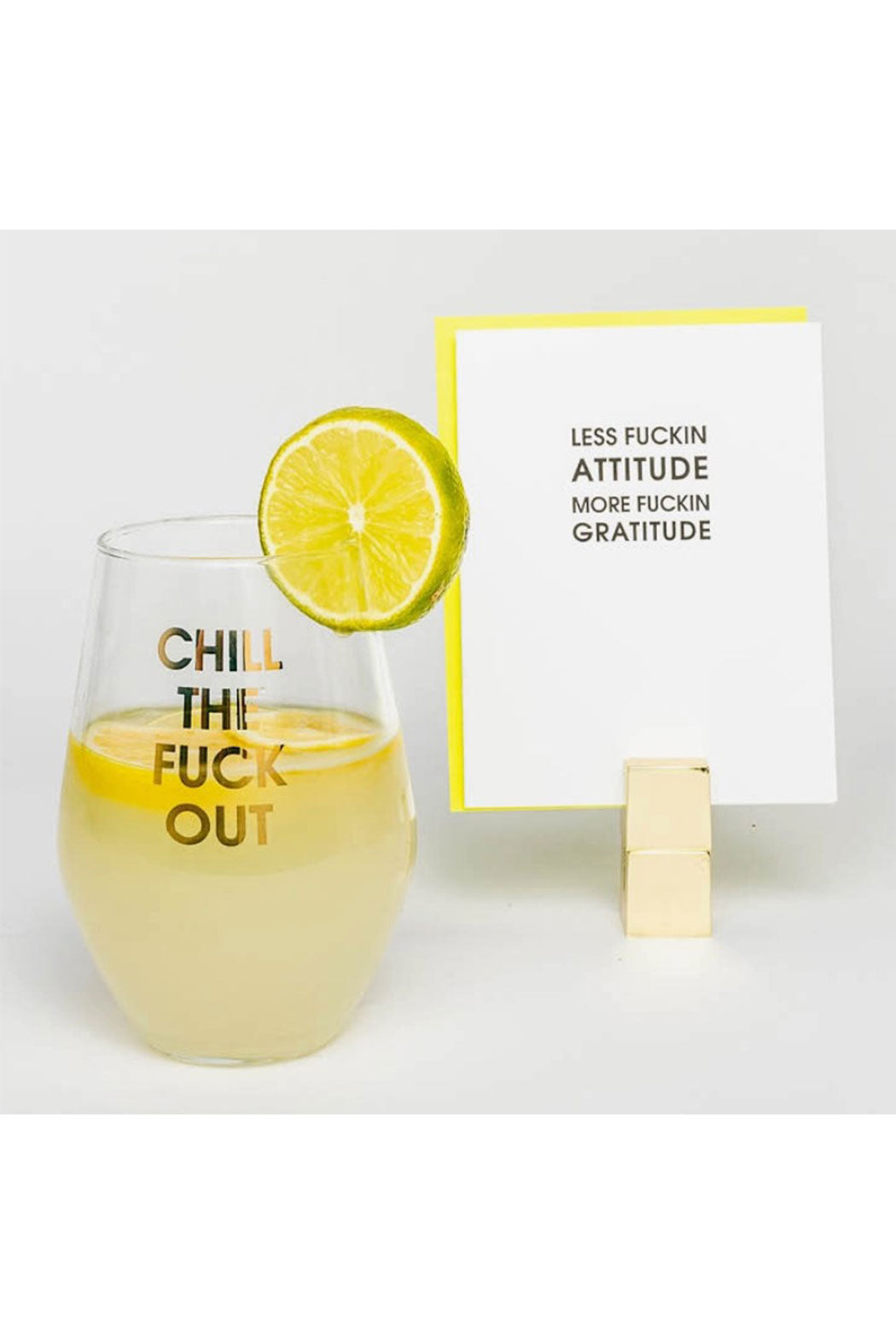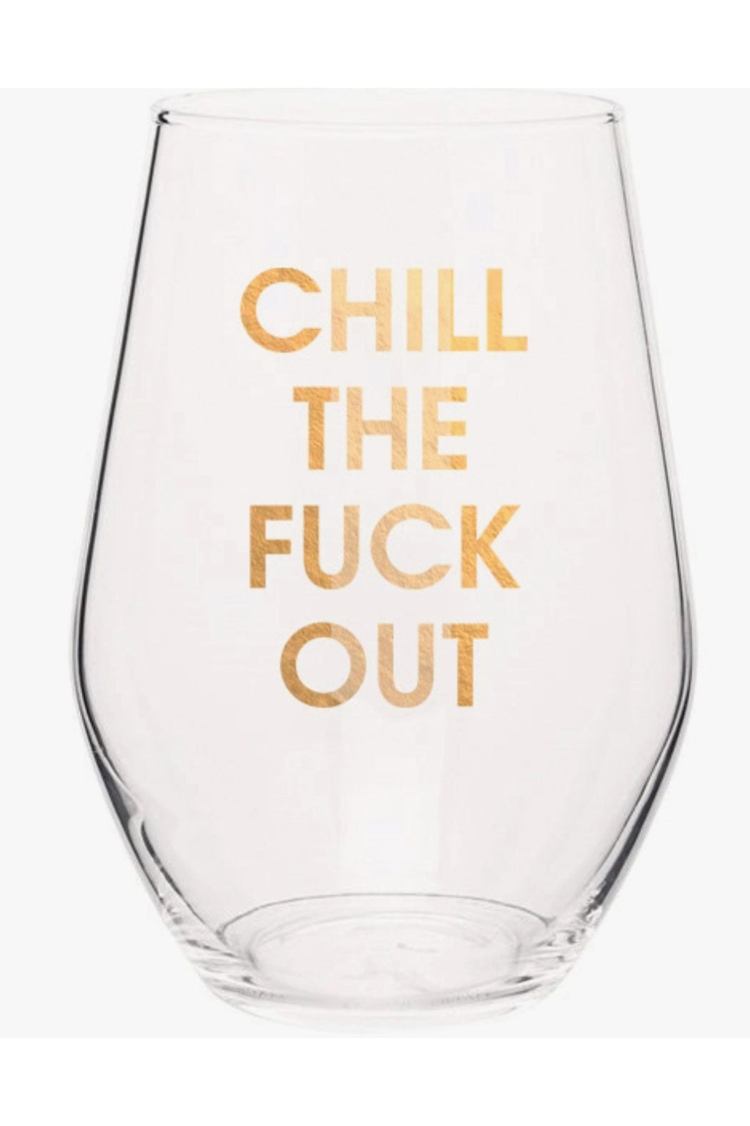 Crush your wine in style with our "chill the fuck out" gold foil stemless wine glass. Wine glasses are printed in los angeles.