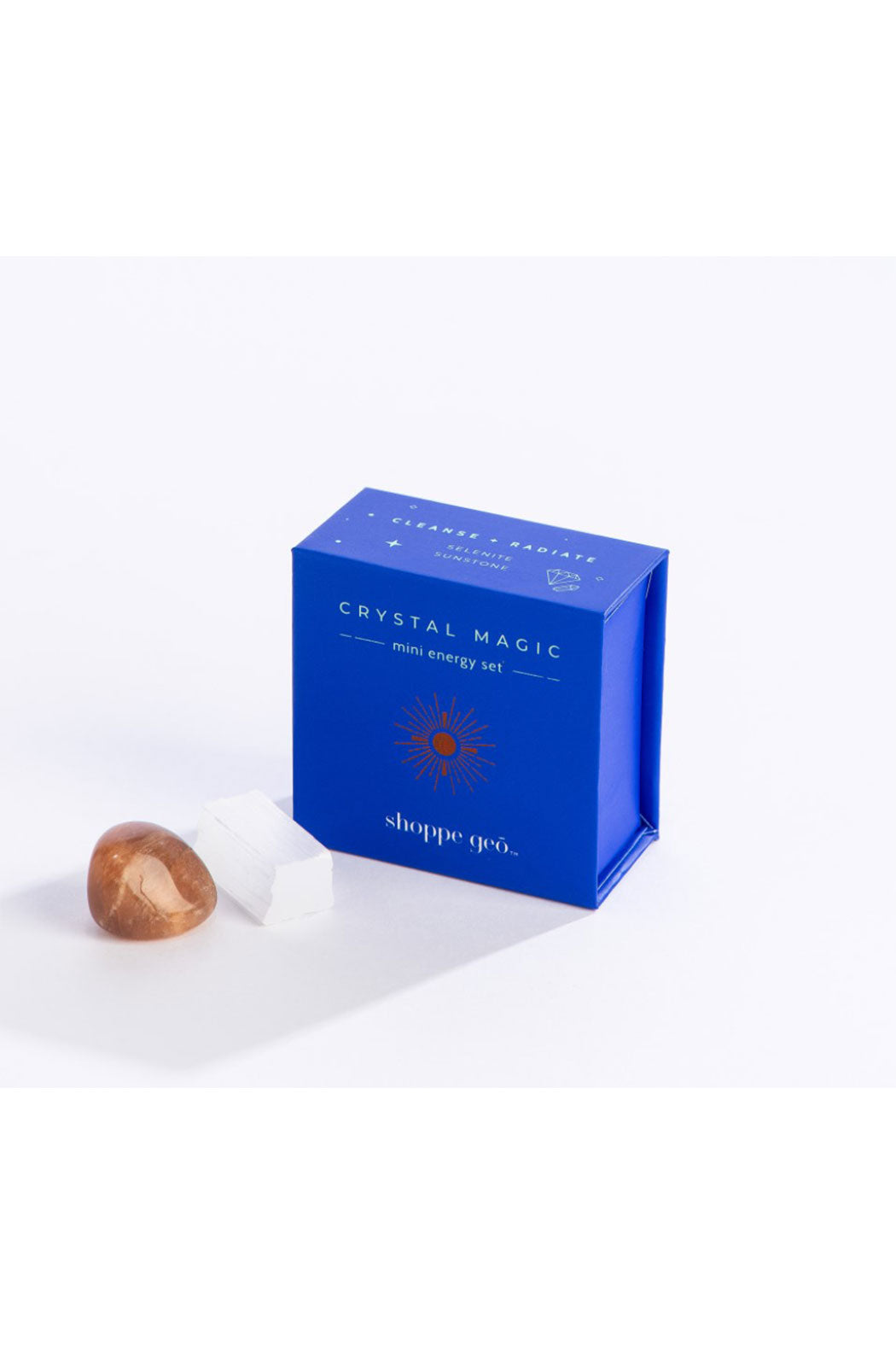 CLEANSE + RADIATE with selenite and sunstone! Crystals have been used in holistic healing and self-care practices for centuries. This CRYSTAL MAGIC collection has been curated for the specific properties, unique beauty, and positive energy of the crystals included. Radiate on with the light of the sun and the moon!