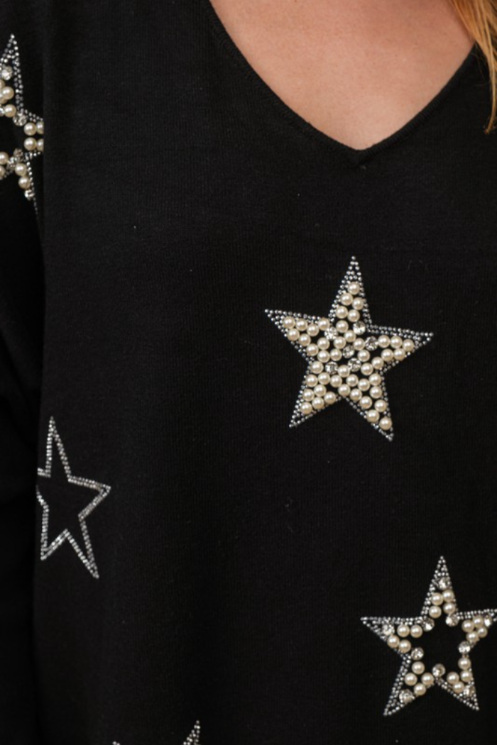 Pearl embellished star v-neck pullover sweater.