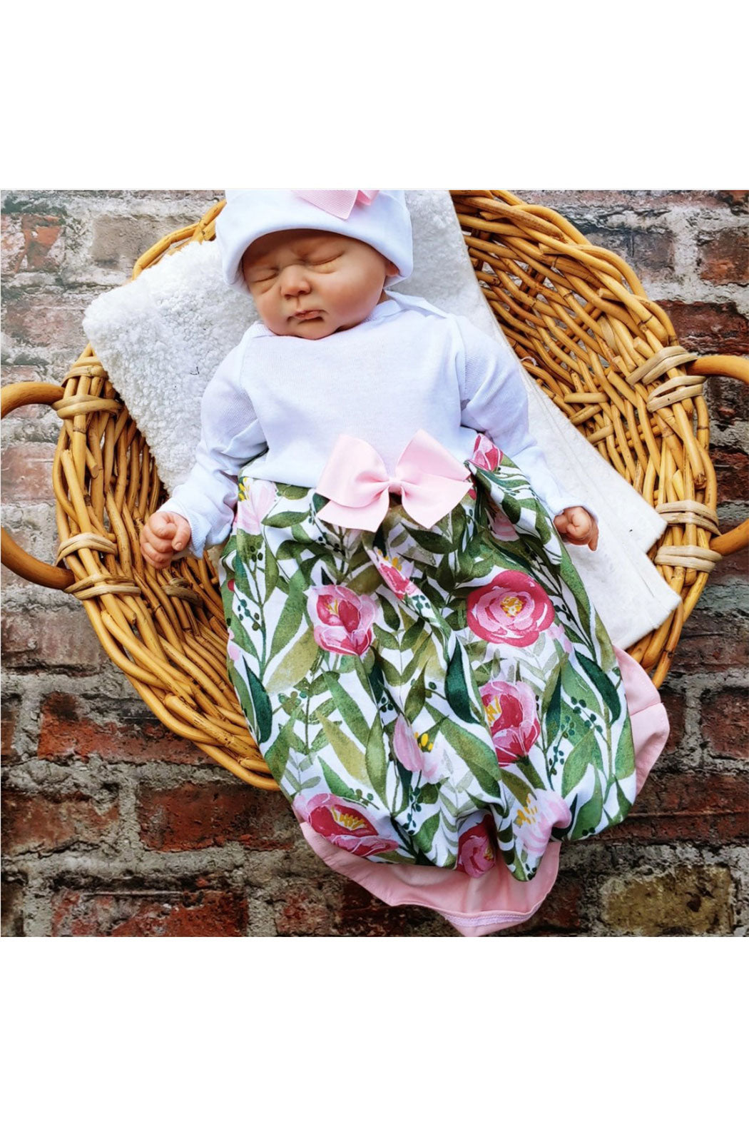 Floral Layette Gown w/ Beanie