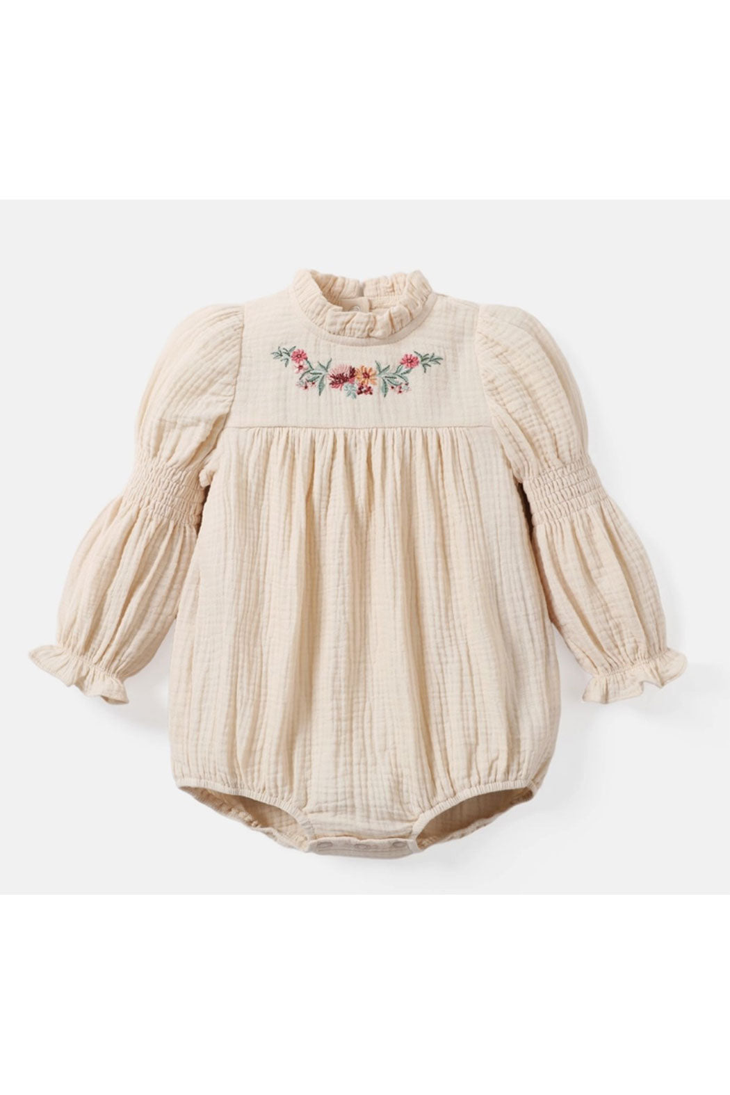 Elegant triangle bodysuit with comfortable and breathable fabric, featuring delicate embroidery on the chest. Perfect for your little princess to shine on any occasion.