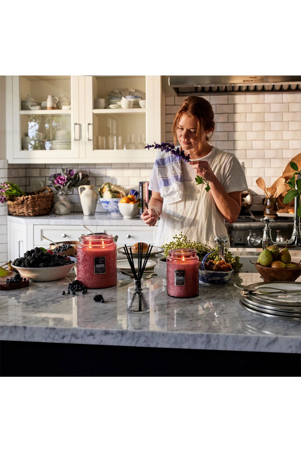 Voluspa’s fragrant diffuser oil is hand-poured into an embossed glass vessel for a subtle pop of elegant decor. Create your homes signature, always-on fragrance in spaces requiring minimal effort, and enjoy for 4-6 months (fill: 3.4 ounces). Includes high absorbency reeds for powerful fragrance without overwhelming.