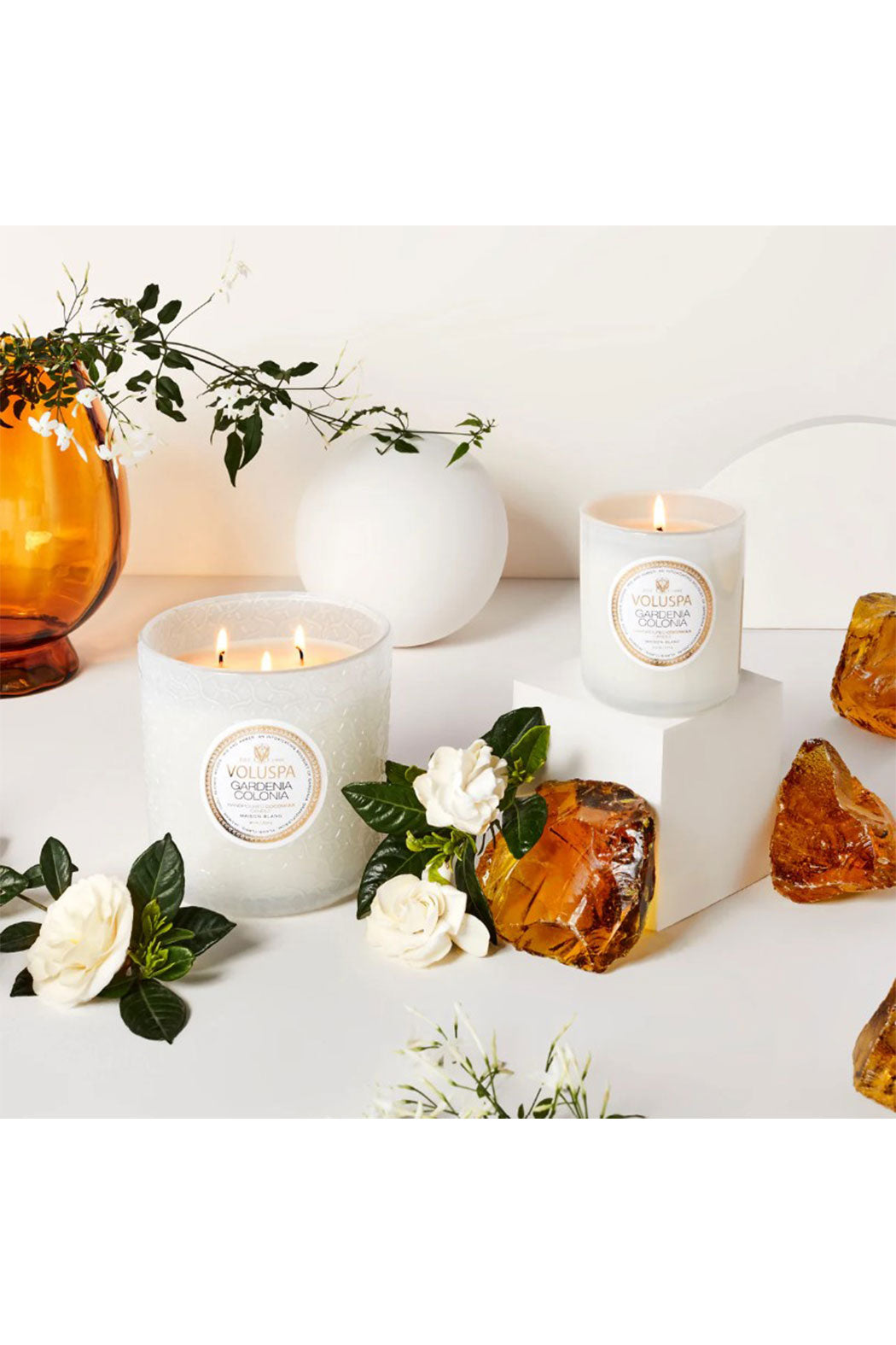 Voluspa's unique coconut wax blend is hand-poured into a 9.5 oz. pearl white glass and topped with a matching lid that keeps the candle dust-free when not in use, and doubles as a base when lit. The single wick allows you to enjoy fragrance throw for 60 hours. Our candles are hand-poured in the United States and feature our proprietary, clean-burning coconut wax blend and 100% natural wicks. Our products are free of phthalates, pesticides, parabens, and sulfates and are never tested on animals. Up-cycle this best seller into a keepsake after the last burn.