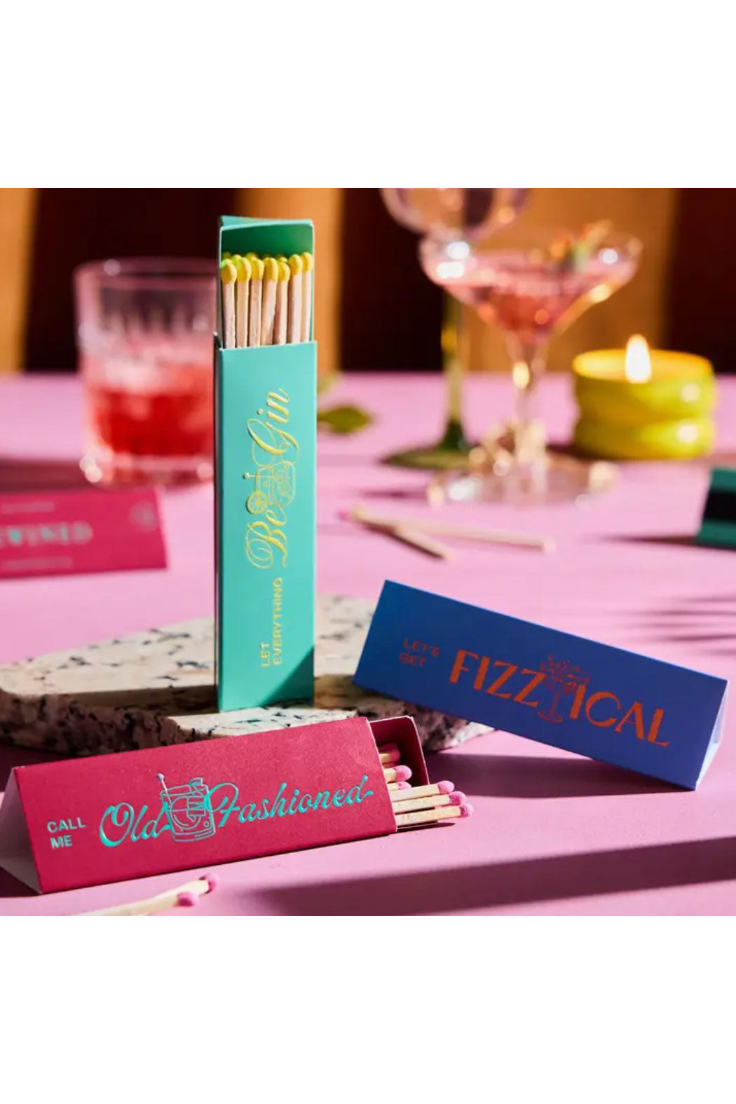Add a spark of festivity to your cocktail hour with our exclusive triangular matchboxes, each adorned with playful, cocktail-themed sayings. Perfect for gifting to the cocktail aficionado in your life or as a charming addition to your bar cart.