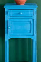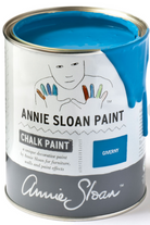 Giverny is a bright, clean and cool blue in the Annie Sloan palette. It is near the greener range of blues, without any red in it.
