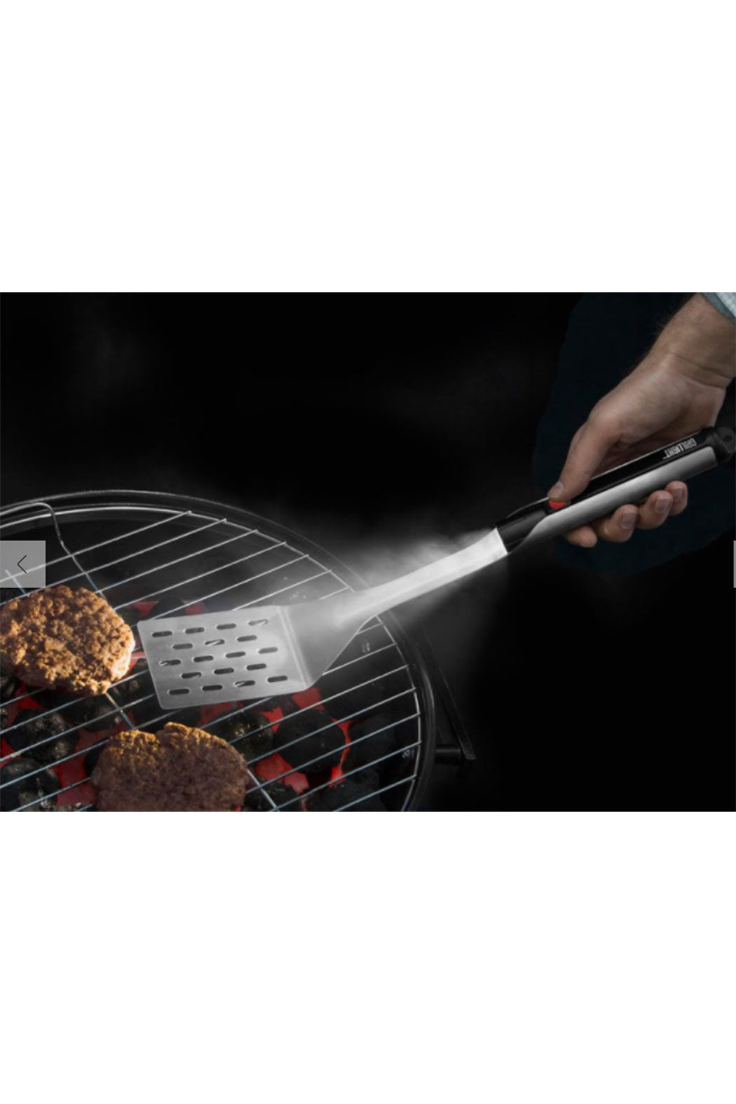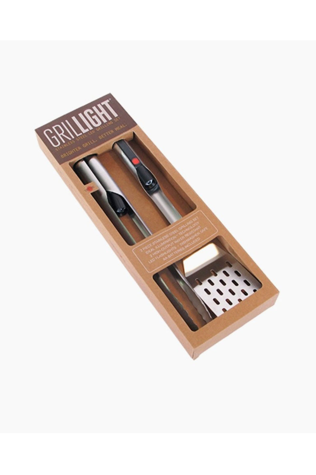Grillight 2 piece Set (Premium Grill Light Spatula and LED Smart Tongs). Premium stainless steel grill spatula and lighted grill tongs with built in LED flashlights. Great for fall tailgates, evening BBQ, and camping. Restaurant grade stainless steel and custom flashlight with ideal illumination technology which perfectly replicates sunlight. Lifetime warranty.