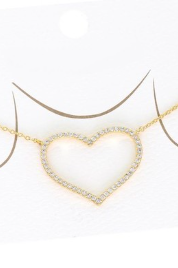15" Gold plated cubic zirconia pave adjustable open heart pendant necklace.
