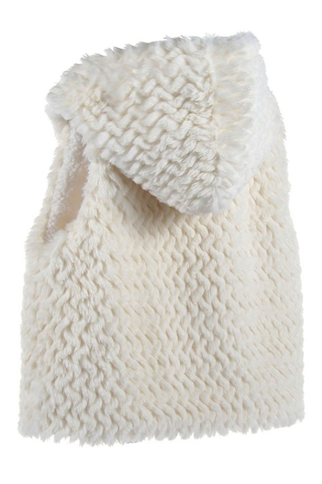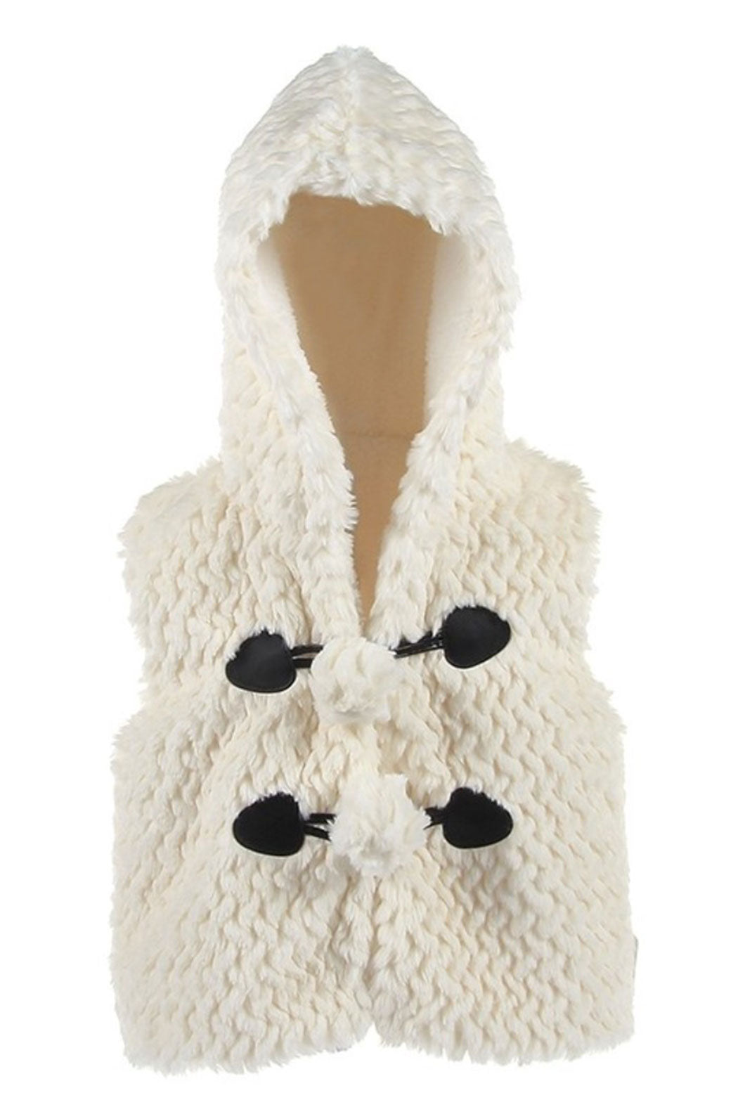 Our hooded faux fur vests are super soft and lined with warm sherpa. They close with a fur ball "button" and are accented with vegan leather.