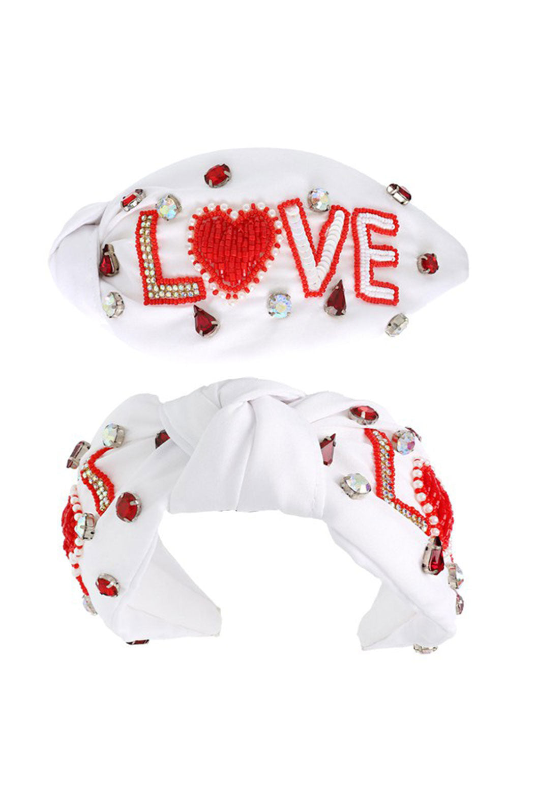 Valentine'S Day "LOVE" gemstone beaded top knotted embellished headband.