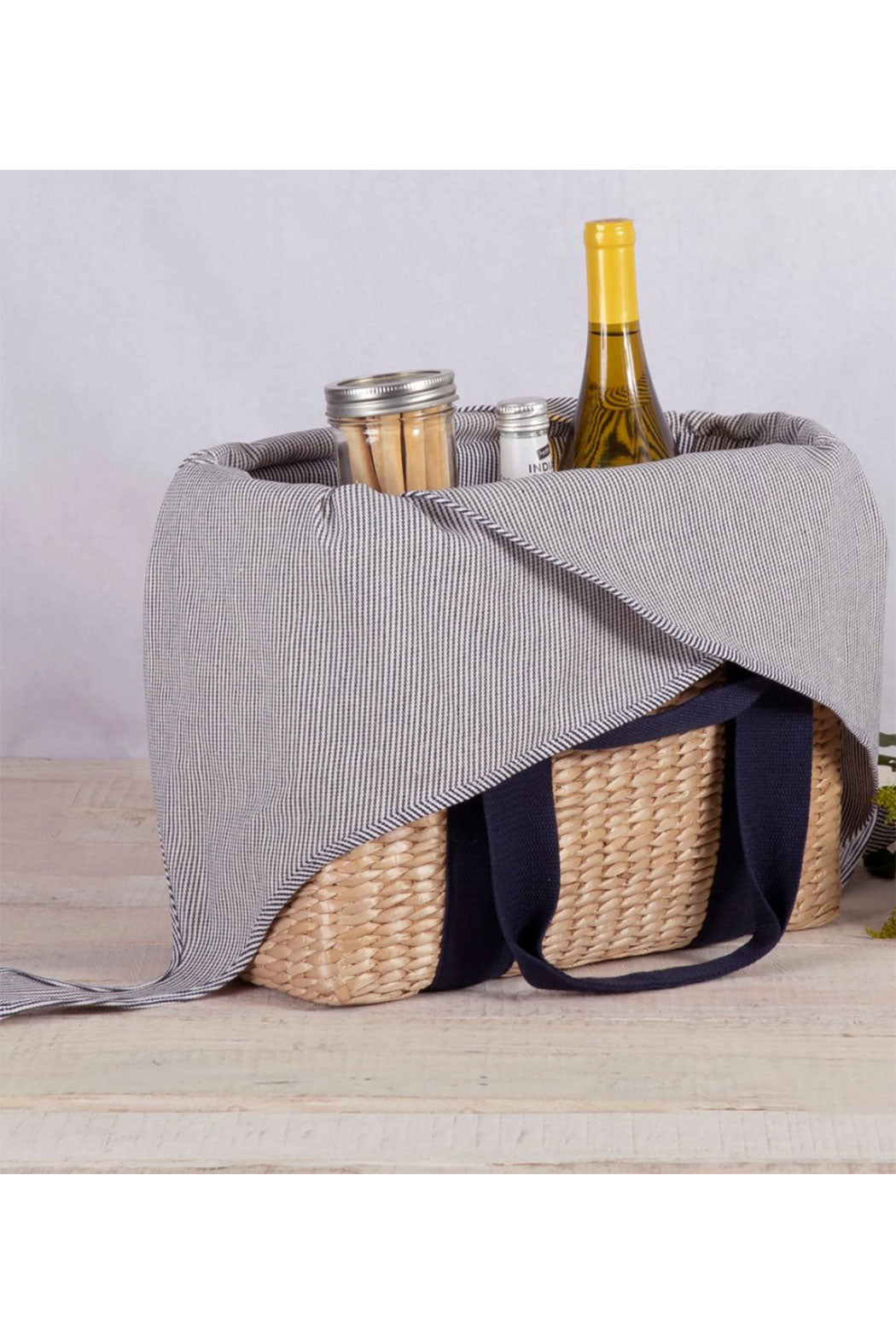 The Parisian Picnic Basket is an insulated, woven Seagrass basket with plenty of room for wine and even, thanks to the innovative loose fabric tie closure, a whole baguette! Ooh la la!