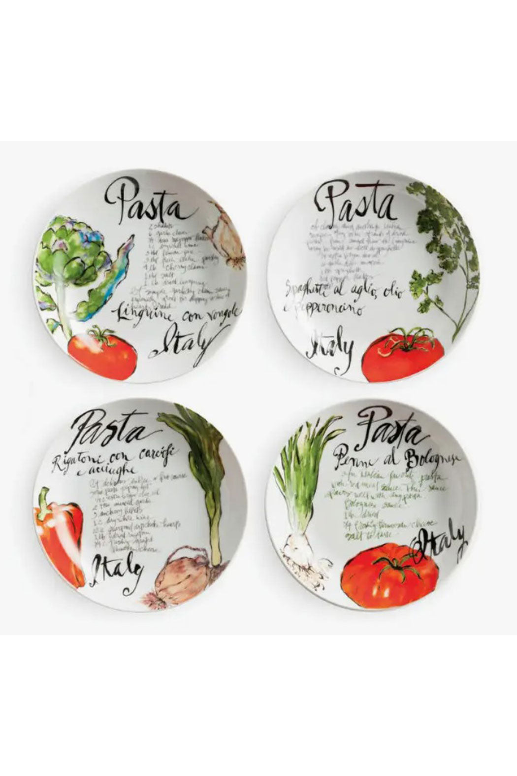 Pasta italiana bowls set of 4, assorted designs, in a gift box