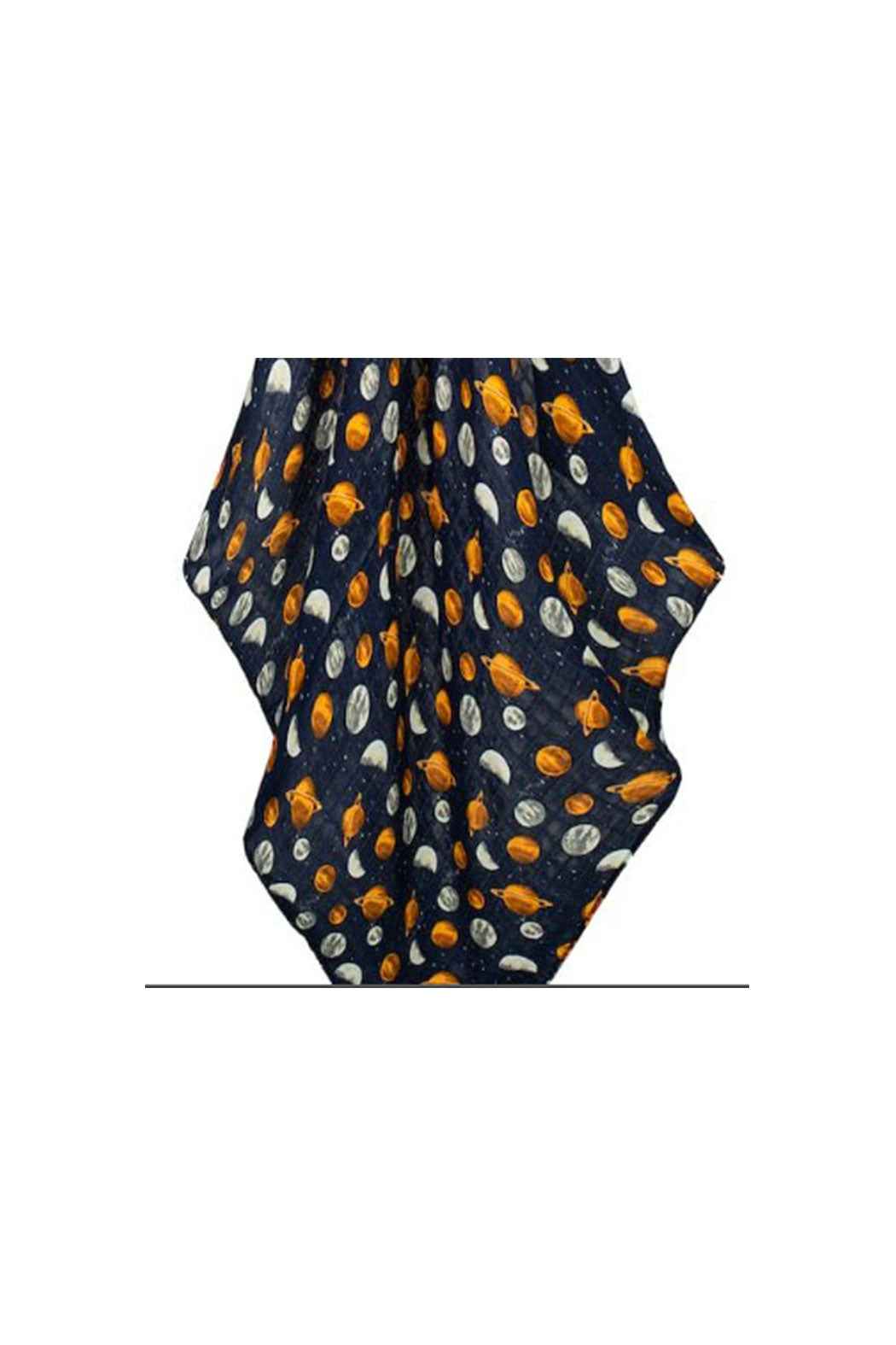 Our sumptuously soft and generously sized newborn and baby Bamboo Muslin Swaddle Blanket in the Planets print helps our little ones feel safe and secure while being wrapped in smooth and gentle luxury. Each Swaddle Blanket measures approximately 47″ x 47″.
