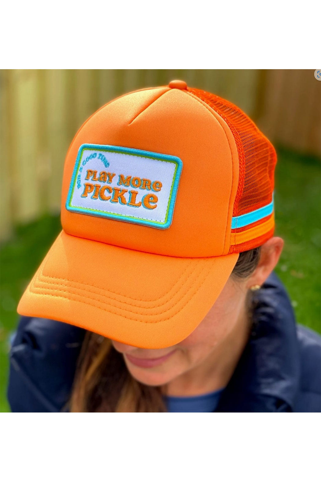 Show off your skills (and your threads) with this orange beauty, featuring a breathable mesh backing, foam front, and adjustable snap closure. It's the perfect pick-me-up for any pickleball player. It looks great on and off the court.