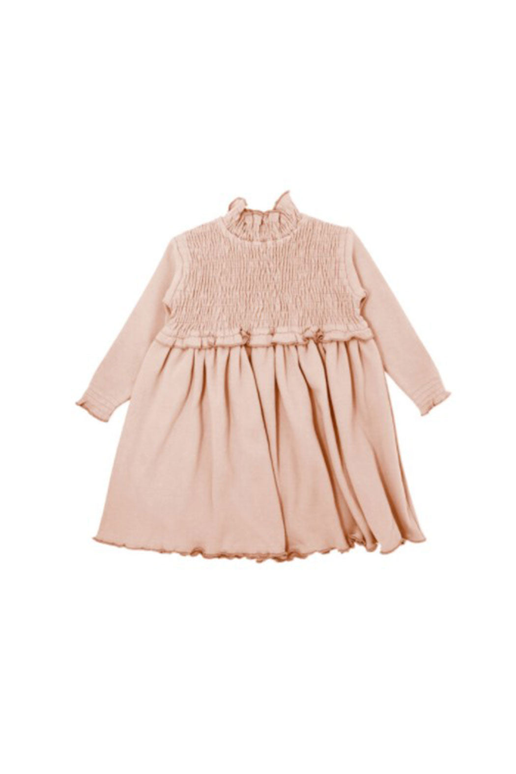 smocked long-sleeve dress with ruffle details