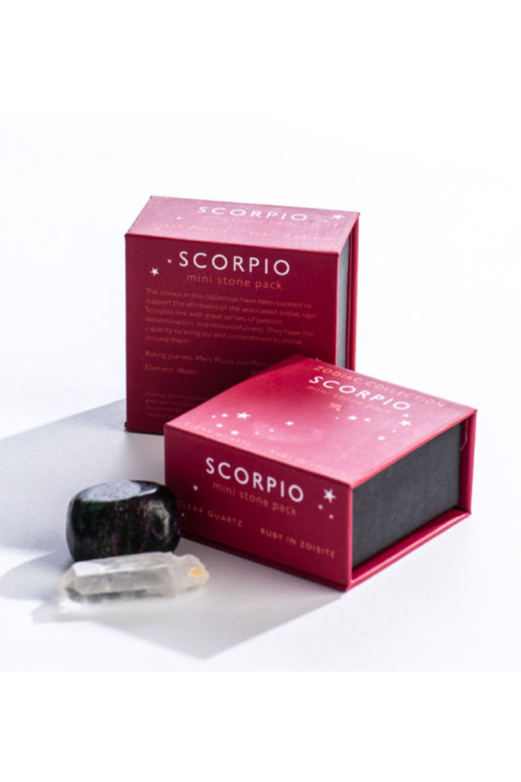 Front cover of box features the Scorpio constellation and stones included. Inner cover describes crystal properties and the back cover describes zodiac sign attributes. The mini size makes it perfect for impulse buys and gifts.