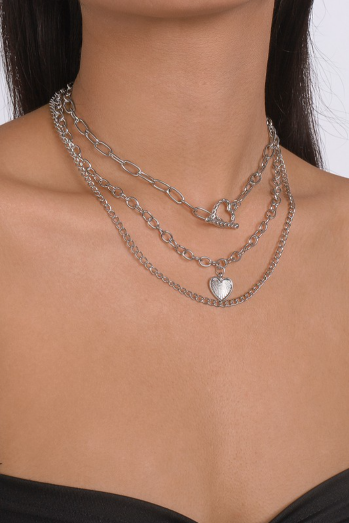 Silver Heart Multistrand Necklace