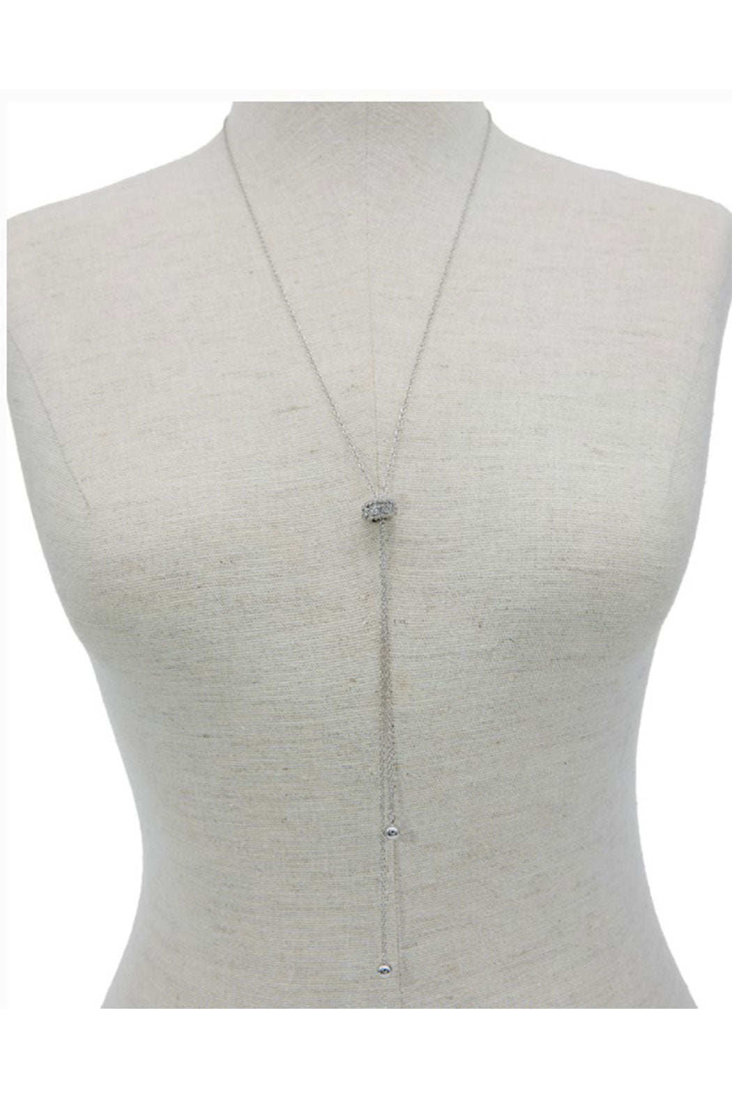 Crystal round slider 36" fine chain lariat.
