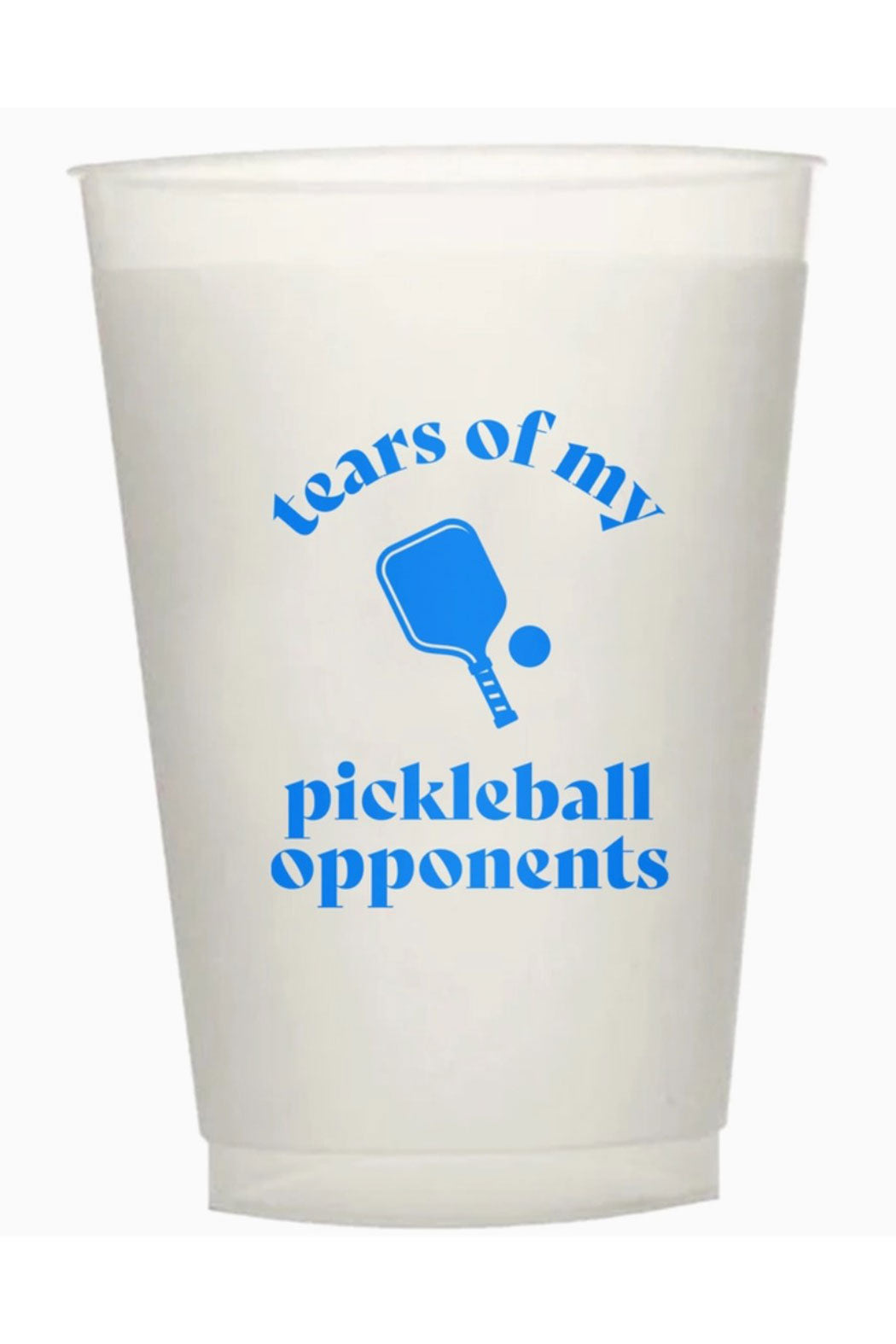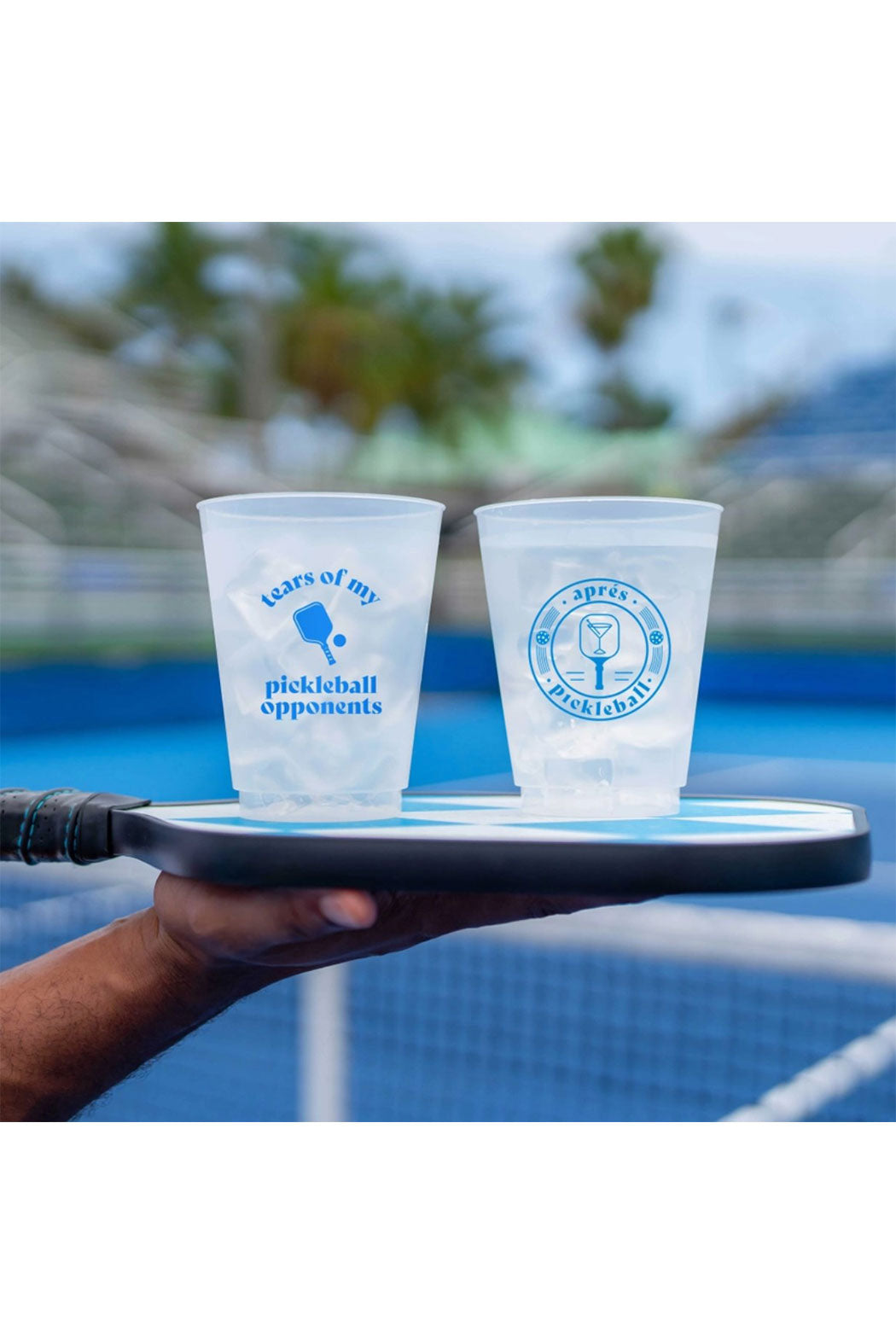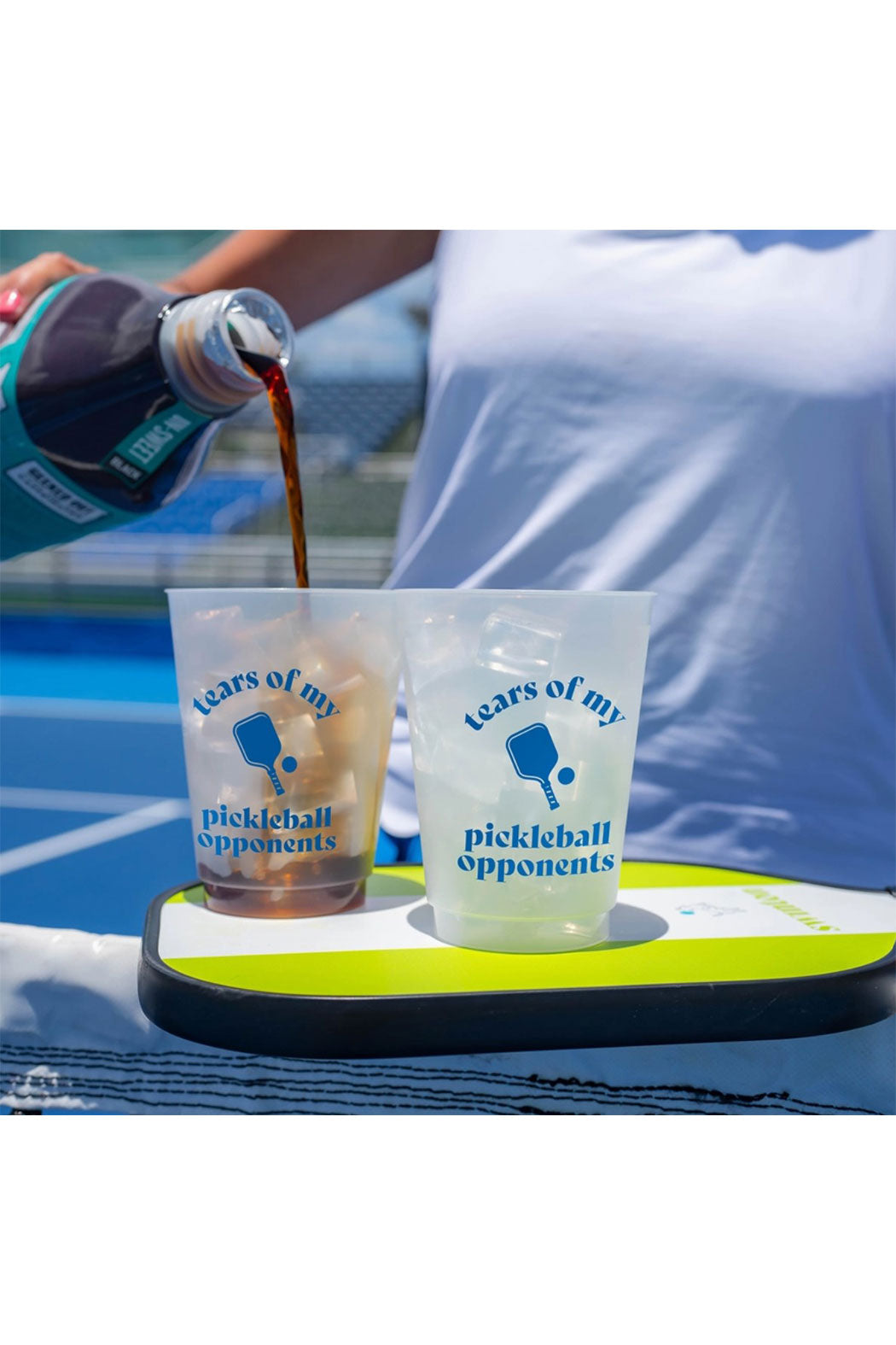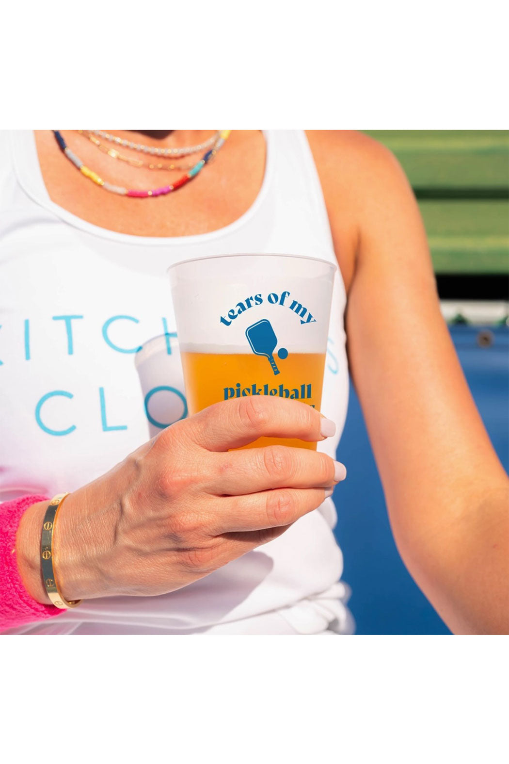 This set of 10 wrapped plastic cups makes a great gift for any pickleball lover. The 16 oz custom reusable pickleball cups are a total crowd pleaser and make for a good laugh with their fun design. Each 10 pack comes wrapped in cellophane with ribbon and ready to party.