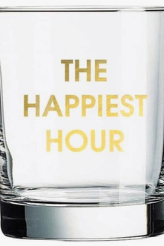 Crush your cocktail in style with our "The Happiest Hour" gold foil rocks glass.