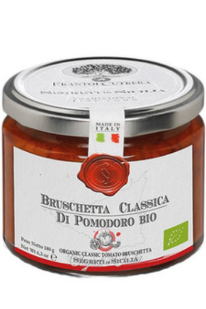 What's not to love about a classic bruschetta - juicy tomatoes, good quality extra virgin olive oil, garlic, and basil - and this one is made with organic ingredients sourced locally in Sicily. Eat it the classic way, spooned over toasted Italian bread, or try something new by using it as a sauce to be served with grilled chicken or fish.
