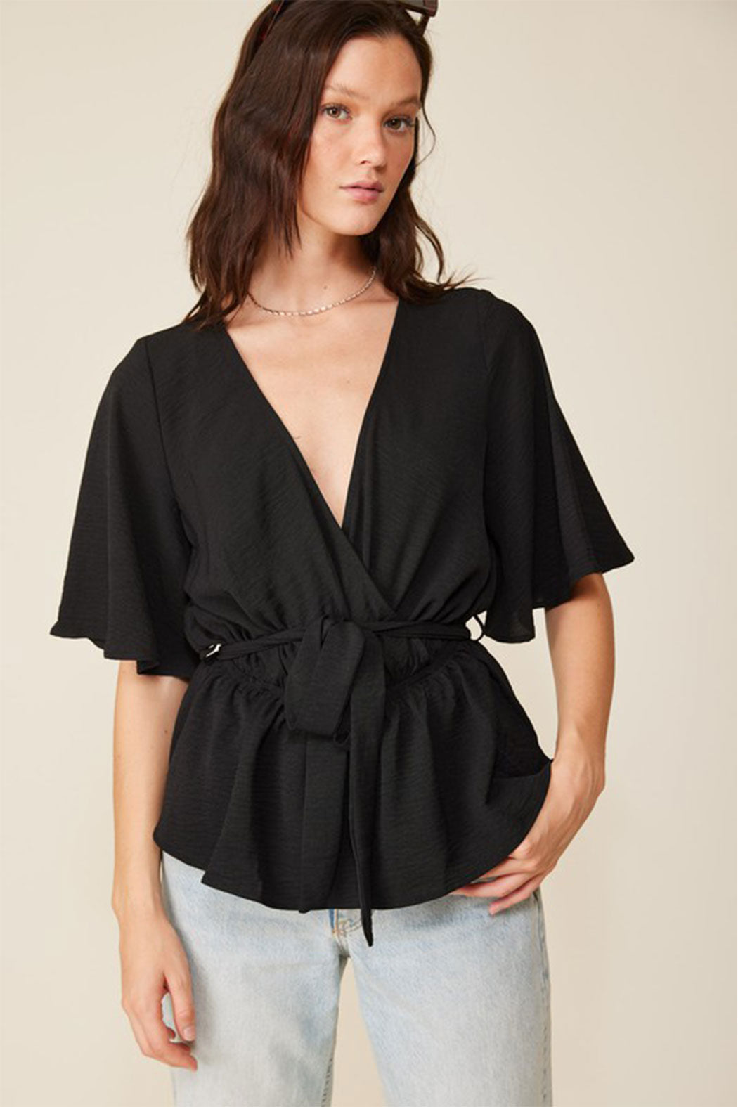 Embrace the free-spirited allure of the Brooklyn airflow surplus flowy top. Experience the breath of fresh air as its fabric gracefully dances on your skin. Adorned with an elastic waist and a stylish belt, this top effortlessly accentuates your silhouette with a touch of elegant charm. Let the winds of fashion whisk you away to a realm of unparalleled style. Perfect for a night out on the town, date night, Barbie night, sorority, rush week, back to school, or brunch.